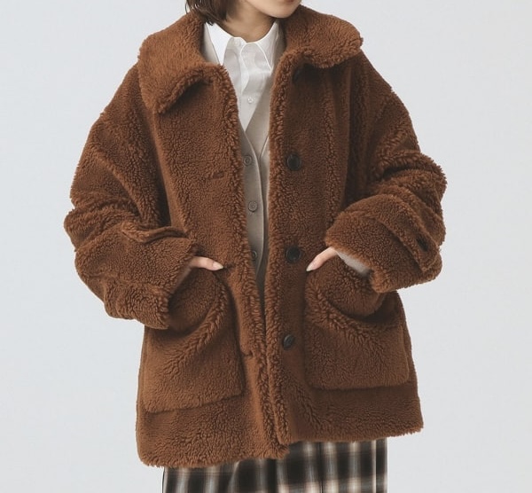 ナイロンやボアコートなど、カジュアルな素材のものを選ぶと似合います。