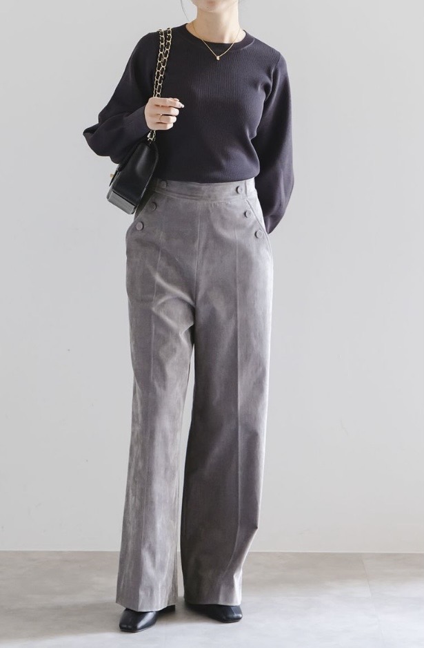 小物(バッグ、靴、ストール、アクセサリー)を変えることで、コーディネートに変化をもたらします。